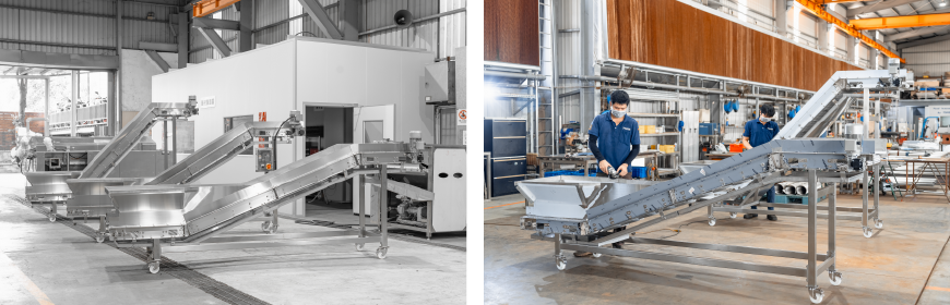 কনভেয়র যন্ত্রপাতি এবং খাদ্য উৎপাদন লাইন পরিকল্পনায় 60 বছরেরও বেশি অভিজ্ঞতার সাথে, Tsung Hsing নির্দিষ্ট শিল্পের প্রয়োজন এবং সাইটের শর্ত অনুযায়ী মডুলার এবং কাস্টমাইজযোগ্য কনভেয়র সমাধান প্রদান করে। আমাদের সিস্টেমগুলি ক্লায়েন্টদের কার্যকর, টেকসই এবং স্কেলযোগ্য উৎপাদন লাইন তৈরি করতে সহায়তা করে—এমনকি সীমিত স্থানে। যদি আপনার একটি কাস্টম কনভেয়র সিস্টেমের প্রয়োজন হয়, আমাদের দল হাতে-কলমে শিল্প অভিজ্ঞতা এবং পেশাদার প্রকৌশল দক্ষতা একত্রিত করে বিস্তারিত এবং ব্যবহারিক কনভেয়িং সমাধান প্রদান করে।