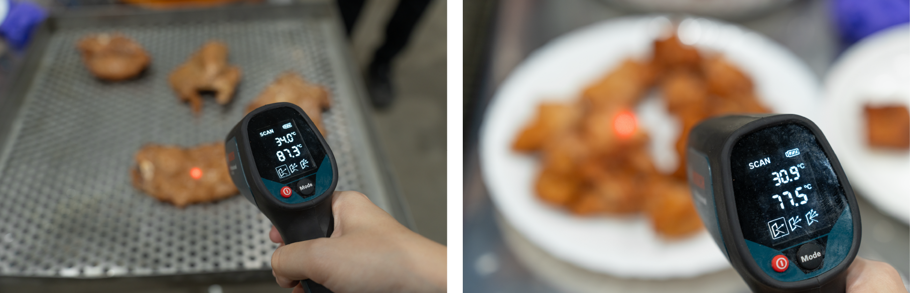• Recipe Impact – A custom sauce used by the client tended to stick to the hexagonal rods during frying, causing product curling or separation of meat from bone. While we proposed a hardware modification (adding clips), the client opted for a cost-free alternative, which we supported to avoid production disruption.